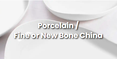 Porcelain is a ceramic used to create beautiful tableware as it is not only strong but has a white hue which can be finished in different ways. Porcelain that contains bone ash is known as Fine Bone China. White ceramics vary slightly in the warmth of the hue. New Bone China contains calcium oxide instead of bone which makes it vegan friendly.